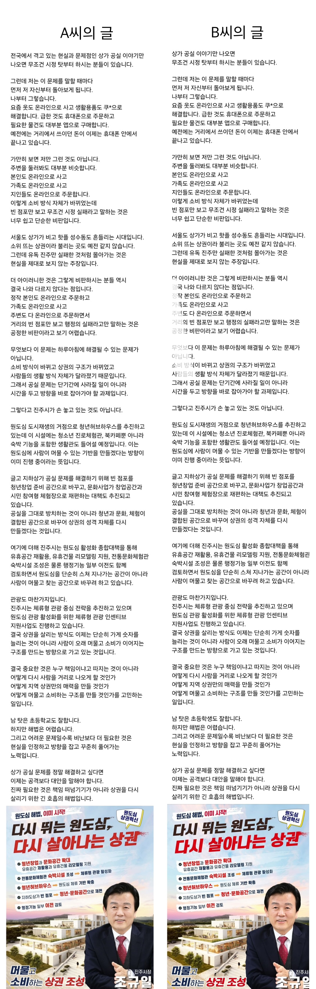 근데 페이스북에는 두 사람의 명의로 올라와 있는 글이 거의 같다. 시작하는 부분만 다를 뿐이다. 글을 올린 시간도 1분 차이밖에 되지 않는다.
